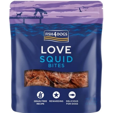 Fish4Dogs kalmáre sú čisto prírodné maškrty vyrobené zo 100 % sušených kalmárov. Ponúkajú jedinečnú kombináciu rôznych textúr a kvalitných morských bielkovín. Vďaka svojej intenzívnej chuti a vôni si ich obľúbia aj vyberaví psíkovia. Neobsahujú žiadne bežné alergény, ako sú obilniny, kuracie alebo jahňacie mäso či vajcia, a sú tak vhodné aj pre psov s citlivým zažívaním.