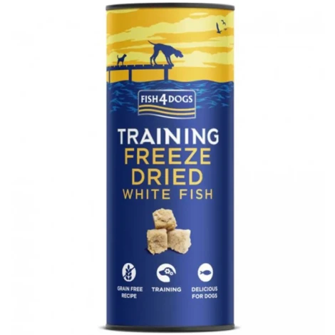 Lyofilizované tréningové pochúťky pre psov Fish4Dogs zaujmú každého milovníka rýb. Malé, ľahké a 100 % prírodné kocky z prvotriednej bielej ryby urobia z vášho psa to najposlušnejšie šteňa pod slnkom. Nízkokalorické, bez obilnín a nadmieru chutné.