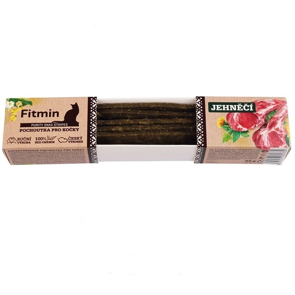 Poctivá prírodná maškrta pre mačky Fitmin Cat Purity Snax Stripes Lamb s vysokým podielom jahňacieho mäsa, ktorý mačkám nielen chutí, ale hlavne prospieva. Maškrta je vyrobená ručne bez použitia chémie, soli, cukru a pridaného škrobu. Ľahko stráviteľná receptúra s riasou chlorellou a koreňom čakanky prispieva k regenerácii a detoxikácii organizmu.