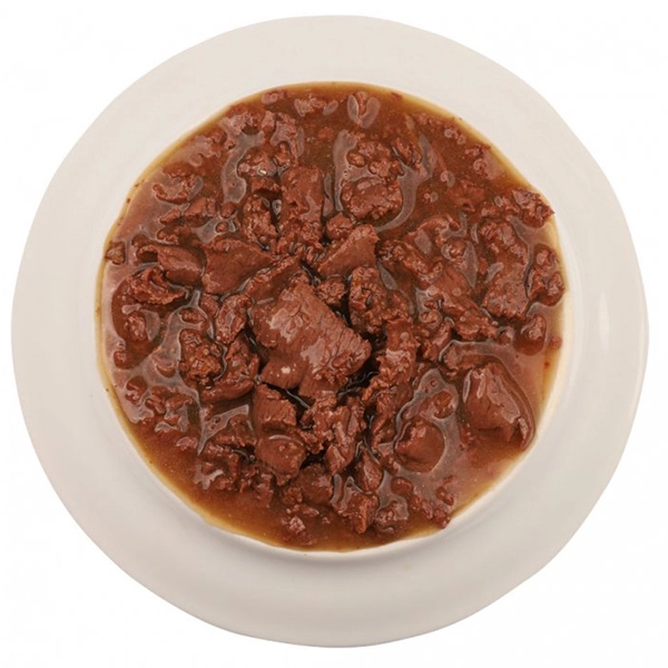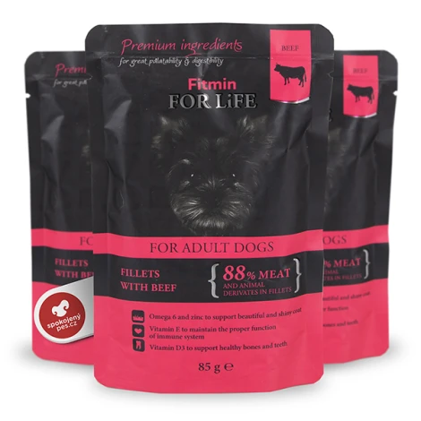 Šťavnatá hovädzej kapsička Fitmin For Life vo forme dusených filetek s omáčkou so sušenými paradajkami. Obsahuje až 88 % mäsa a je špeciálne určená pre malé plemená psov.