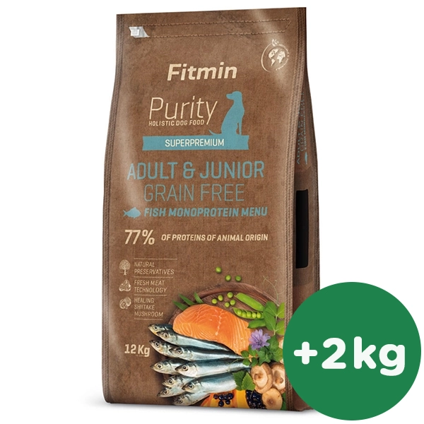 Fitmin Dog Purity GF Adult & Junior Fish menu je kompletné monoproteínové bezlepkové krmivo pre mladých a dospelých psov stredných a veľkých plemien. S týmto krmivom doprajete svojmu psovi plnohodnotné rybie menu - čerstvého sleďa s bylinkami a farmárskymi zemiakmi na hubách shiitake a tekvicových plátkoch. Čerstvé suroviny, kvalita a rafinovaná chuť krmiva oslovia juniorov od 5 mesiacov a dospelých psích labužníkov.