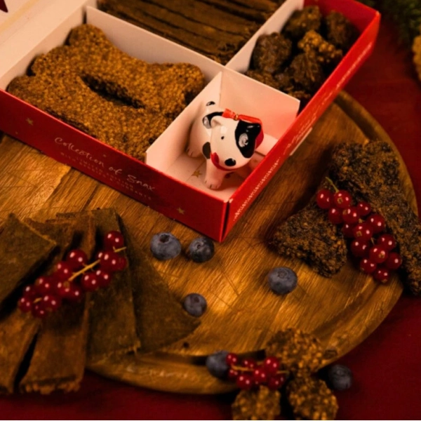 Najvoňavejší darček pod stromčekom. Zimná kolekcia Fitmin Purity Snax je explóziou chutí, vôní a nekonečnej radosti, to všetko zabalené v jednej vianočnej škatuľke. Prírodné chrumkavé pochúťky z čerstvého mäsa sú bezlepkové a obohatené o čučoriedky, brusnice a červené ríbezle.