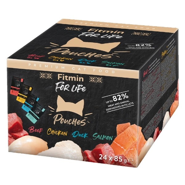 Výhodné balenie lahodných vrecúšok Fitmin For Life, ktorými nepohrdne ani vyberavejšia mačička. Šťavnaté, voňavé a s viac ako 74 % mäsa. Je po chuti hovädzie, kuracie, kačacie alebo losos? Nemusíte váhať nad správnou príchuťou, s výhodným multipackom Fitmin vyskúšate rovno všetky. Chutné kapsičky majú vysoký podiel bielkovín a znížený obsah tuku, čím udržia vášho maznáčika v perfektnej kondícii. Sú vysoko stráviteľné, doplnené o cenné vitamíny a minerály na podporu celkového zdravia.