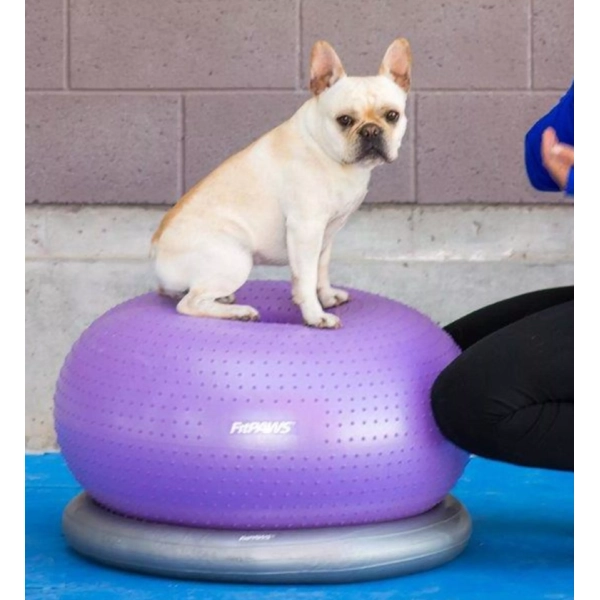 Balančná pomôcka FitPaws v tvare donuta. Táto lopta je vhodná na cvičenie a posilňovanie všetkých partií psa. Povrch NEW TRAX zaisťuje lepšiu stabilitu psa, zabraňuje skĺzavaniu a poskytuje stimuláciu neurosenzorov.