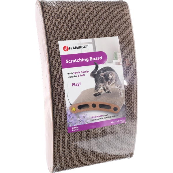 Kartónové škrabadlo Flamingo Crabi s hračkou je tu pre všetky zvedavé mačky, ktoré sa rady zabávajú. Škrabací mostík a hračka v jednom prinesú do šantenia vašej mačky trochu toho hravého spestrenia. Kartónové škrabadlo pomôže pri ostrení pazúrikov, zatiaľ čo škrabadlo s loptičkou podporí hravosť a lovecké inštinkty vašej mačky. Pre ešte väčší pôžitok z hry posypte škrabadlo mačacou mätou, ktorá vašu mačku rozvášni.