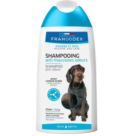 odstrániťŠampón Francodex pre psov, ktorý neutralizuje nepríjemné pachy a zabraňuje ich znovuobjavenie. Šampón nielen čistí srsť, ale aj hydratuje pokožku psa. Vďaka neutrálnemu pH je vhodný aj pre častejšie použitie.