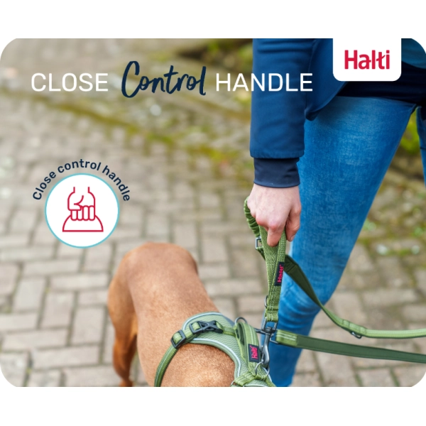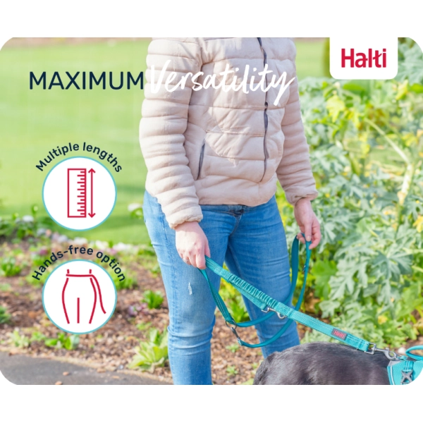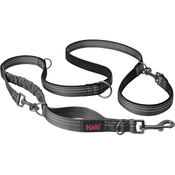 Oba konce vodítka Halti sú vybavené prídavnou karabínou, ktorá umožňuje meniť dĺžku vodítka, viesť psa s dvojitou sponou, ktorá pomáha predchádzať ťahaniu za vodítko, alebo venčiť dvoch psov súčasne. Vodítko možno tiež pripnúť okolo pása, aby ste mali obe ruky voľné, napríklad na zachytenie krásnej panorámy alebo dobrého občerstvenia. Na prechádzanie cez cestu, míňanie cudzieho psa alebo držanie psa pri tele poslúži robustná rukoväť.