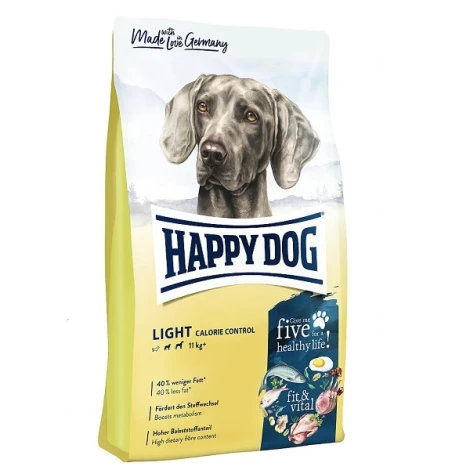Happy Dog Fit & Vital Light Calorie Control je kompletné krmivo pre dospelých psov nad 11 kg, ktorí majú nadváhu, alebo bojujú s hmotnosťou po kastrácii. Granule majú znížený obsah sacharidov a tukov a zvýšený obsah vlákniny.