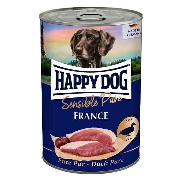 Happy Dog konzerva Ente Pur France je kompletné krmivo pre psy obsahujúce najkvalitnejšie suroviny od nemeckých farmárov. Konzerva je obohatená o vitamíny a nenachádza sa v nej rastlinný obsah, výrobca kladie dôraz na prirodzenosť druhu a rozmanitosť zložiek. Zložky neobsahujú obilniny, sú bezlepkové a vhodné pre psy s citlivým trávením.