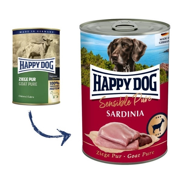Happy Dog konzerva Ziege Pur je kompletné krmivo pre psy, ktoré obsahuje najkvalitnejšie suroviny a prísady od nemeckých farmárov. Konzerva je obohatená o vitamíny a nenachádza sa v nej rastlinný podiel.
