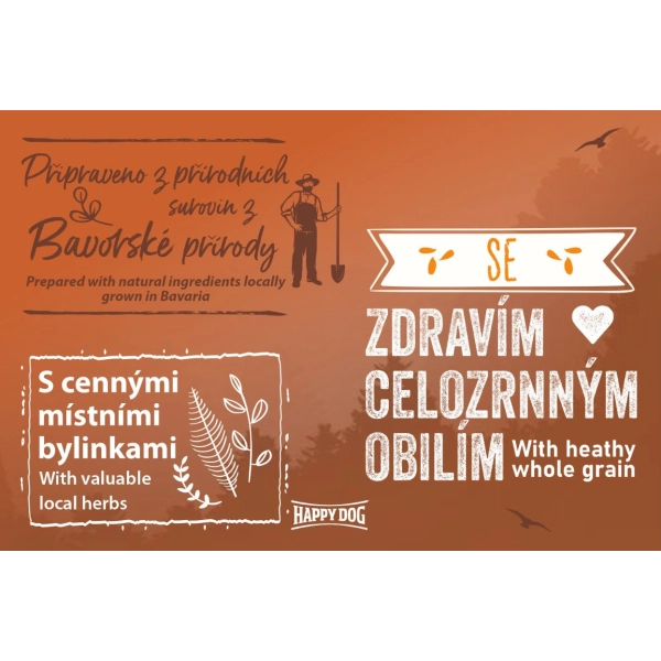 Happy Dog NaturCroq Rind & Reis - celozrnné krokety s hovädzím, hydinovým a rybím mäsom, obilninami, ryžou a bylinkami. Kroketky sú tvrdé, krásne chrumkavé. Vyvážené a ľahko stráviteľné kompletné prémiové krmivo pre dospelých psov všetkých plemien s normálnou spotrebou energie. Jeho zvláštne plus - zdravá celozrnná zmes obsahuje lahodnú ryžu.