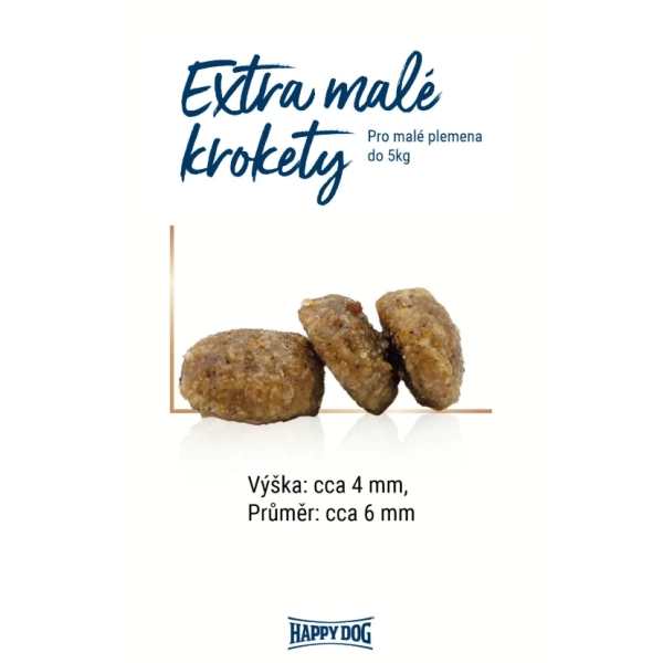Happy Dog Sensible Mini XS Japan je kompletné krmivo pre dospelé psy malých a veľmi malých plemien. Bezlepková a veľmi chutná receptúra extra malých granuliek je optimálne prispôsobená malým zúbkom veľmi malých psov do 5 kg dospelej hmotnosti.