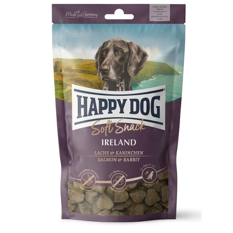 Happy Dog Soft Ireland Snack sú drobné mäkké pochúťky pre psov. Obsahujú mäso z králikov a lososov, podporujú zdravie kože a srsti a sú stráviteľné z viac ako 90 %. Extra chutné dobroty pre všetkých chlpáčov.