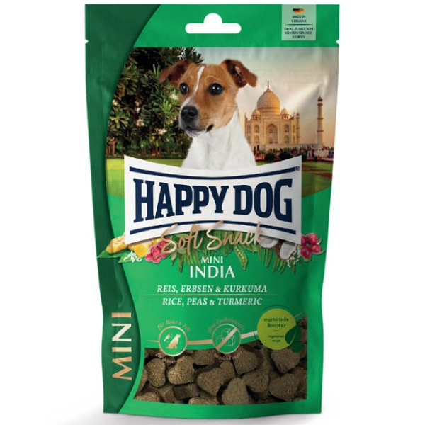 Happy Dog Soft Snack Mini India sú mäkké vegetariánske pochúťky pre malé psy. Receptúra s kokosom a kurkumou je ideálna pre citlivé trávenie, potravinové intolerancie a pre zdravú kožu a srsť. Extra chutné pochúťky pre mini chlpáčov.