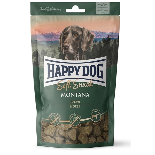 Happy Dog Soft Snack Montana sú drobné mäkké žuvačky. Obsahujú konské mäso, sú schválené aj pre psíkov s potravinovými alergiami a citlivým zažívaním. Extra chutné dobroty pre všetky chlpáča.