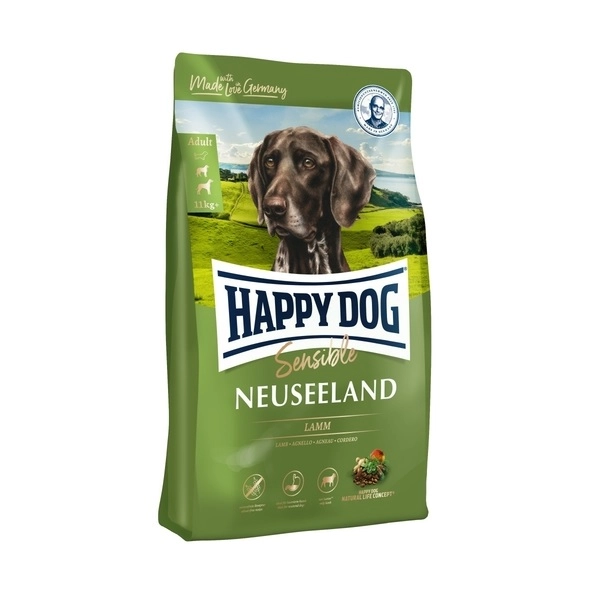 Gurmánske krmivo pre psov, ktoré je veľmi šetrné k črevám a žalúdku. Happy Dog Neuseeland obsahuje vybrané suroviny ako je novozélandské jahňacie mäso alebo morské mušle. Bezlepková receptúra.