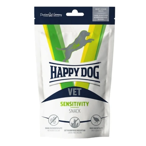 Happy Dog Vet Snack Sensitivity je doplnkové krmivo pre dospelých psov, ktorí trpia neznášanlivosťou niektorých zložiek potravy. Zložky nespôsobujú tradičné alergie a sú vhodné pre psy všetkých plemien.
