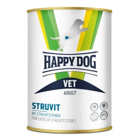 Happy Dog Vet Struvit je kompletné diétne krmivo pre dospelých psov na okyslenie moču, rozpustenie struvitových kameňov a zníženie ich opakovaného výskytu.