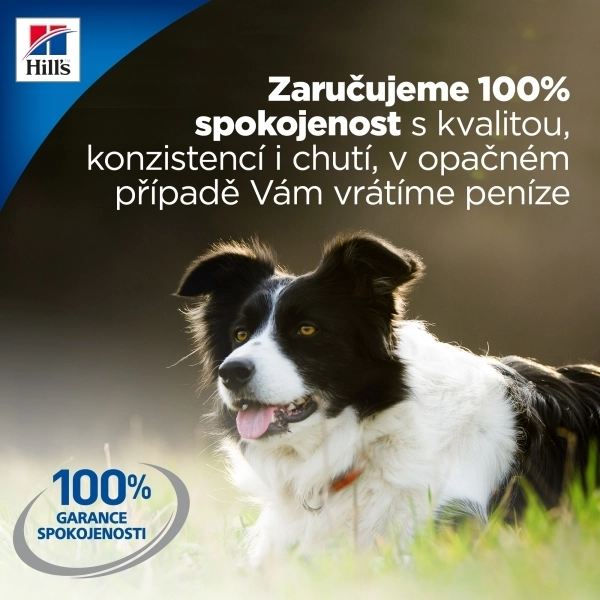100 % záruka spokojnosti Hill's - ak nie ste z akéhokoľvek dôvodu spokojní, vráťte nespotrebované množstvo krmiva (min. 75 % obsahu balenia). Vrátime vám plnú sumu alebo vám krmivo vymeníme za iné.