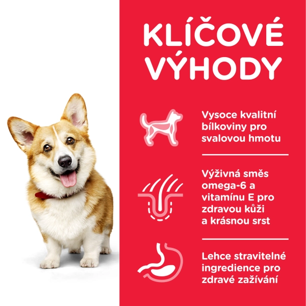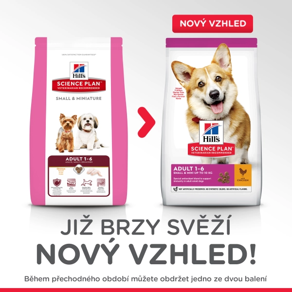 Hill's Canine Adult Small & Mini Chicken je kompletné krmivo pre malé a mini psíkov v dospelom veku. Obsahuje špeciálnu zmes antioxidantov pre dlhodobú podporu imunity. Granule sú drobné, prispôsobené mini psíkom.