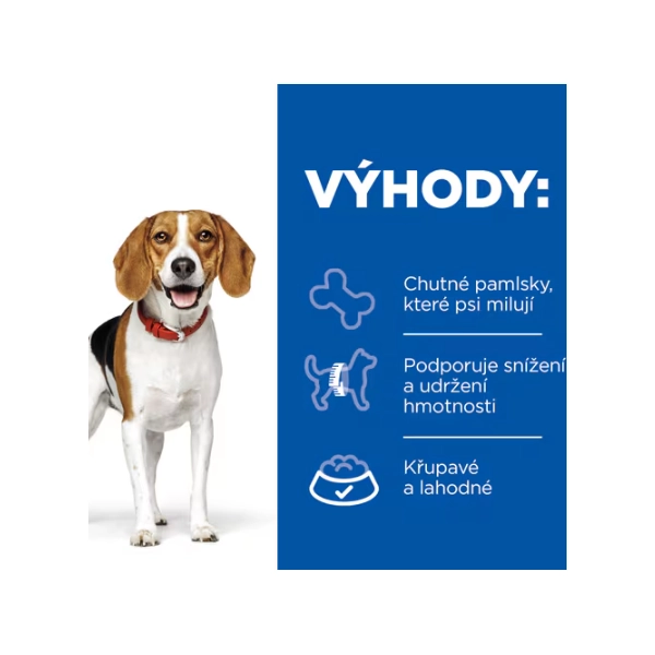 Veterinárne maškrty Hill's so zníženým obsahom tuku pre psy s nadváhou alebo so sklonom k nadváhe. Ideálna odmena pre menej aktívnych psov a kastrovaných psov, ktorí chcú tiež maškrtiť. Doplnia vybrané veterinárne diéty a podporia chudnutie alebo udržanie hmotnosti.