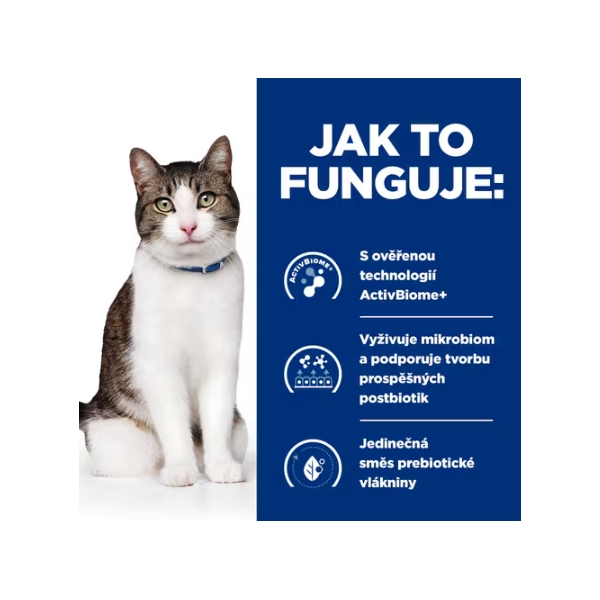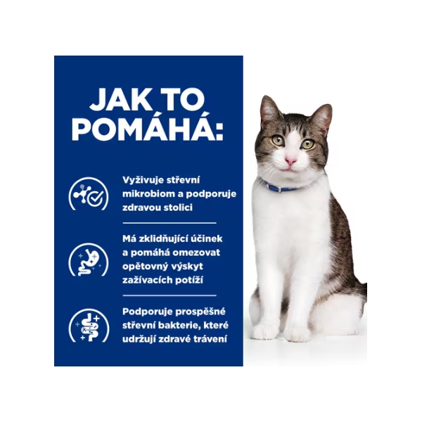 Revolúcia v liečbe porúch trávenia. Hill's Prescription Diet Feline Gastrointestinal Biome Stress Stew mokré krmivo pre mačky stavia zdravie črevného mikrobiómu do popredia starostlivosti o trávenie. Osvedčená technológia ActivBiome+, jedinečná zmes prebiotickej vlákniny a pridané zložky podporujú činnosť prospešných črevných baktérií, pomáhajú zmierniť stres a podporujú pravidelnú, zdravú stolicu už za 24 hodín.