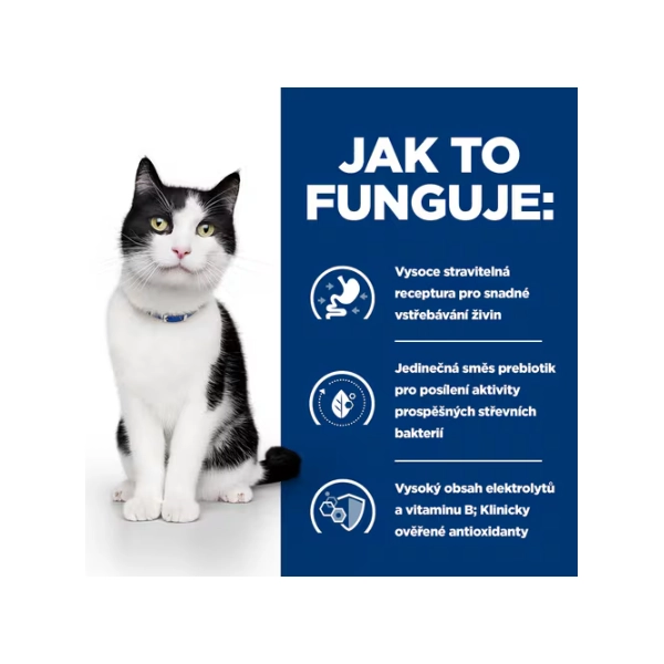 Hill's PD Feline i/d je kompletné dietetické krmivo pre mačky, ktoré je vysoko stráviteľné. Krmivo pomáha k zmierneniu porúch vstrebávania živín v črevách, kompenzácii zlého trávenia a exokrinnej pankreatickej insuficiencii u mačiek. Má zvýšený obsah sodíka a draslíka a obsahuje vysoko stráviteľné prísady, vďaka ktorým vyživuje črevný mikróbiom a pomáha zmierniť tráviace problémy. Obohatené o technológiu ActivBiome+, čo je patentovaná zmes prebiotík, u ktorých je overené, že rýchlo vyživujú črevný mikróbiom a podporujú tak zdravé trávenie a celkovú pohodu. Krmivo je vo forme lahodných kapsičiek s príchuťou kurčaťa.