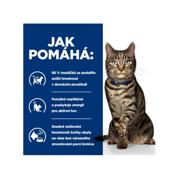 Hill's PD Metabolic je kompletné dietetické krmivo pre dospelé mačky s kuraťom, určené na zníženie nadmernej telesnej hmotnosti a udržanie zdravej hmotnosti. Krmivo má nízku hodnotu energie. Krmivo stimuluje prirodzenú schopnosť mačky spaľovať tuky a dodáva jej energiu pre aktívnu hru. Unikátna zmes vlákniny zaisťuje, že sa mačka cíti sýto a spokojne. Overená výživa pre zdravé chudnutie, vďaka ktorej mačka schudne už iba za 2 mesiace. Vo forme lahodných kapsičiek.