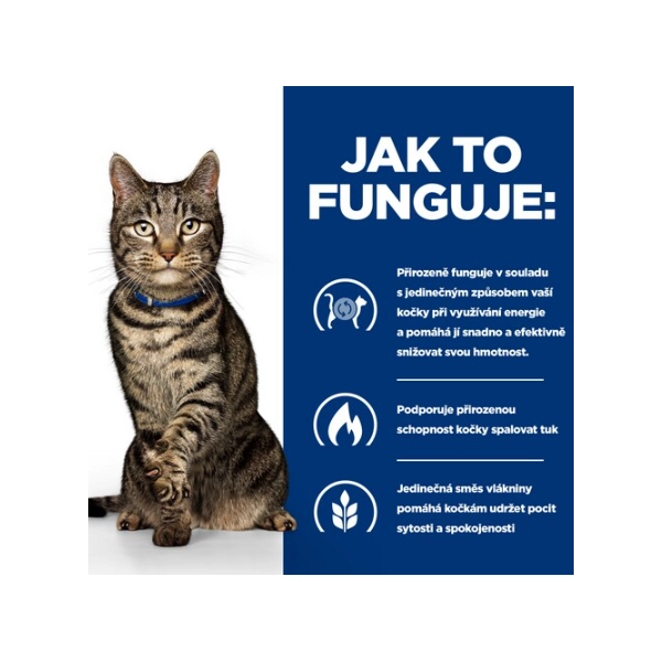 Hill's PD Feline Metabolic je kompletné vlhké krmivo pre mačky s nadváhou alebo mačky, ktoré si potrebujú udržať optimálnu telesnú hmotnosť. Patentovaná zmes zložiek reguluje apetít mačiek a vyvoláva pocit sýtosti.