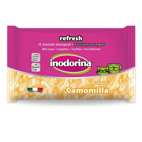 Servítky Inodorina s harmančekom umožní šetrné čistenie očí i uší kdekoľvek sa práve nachádzate. Praktické balenie obrúskov napustených starajúcim roztokom, ktorý čistí, ale nedráždi. Vhodné pre mačky, psy, mačiatka aj šteňatá. Ideálny aj na pravidelnú starostlivosť.