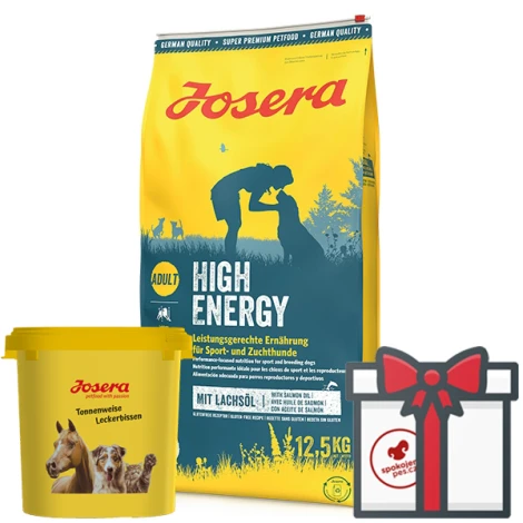 Kompletné suché krmivo Josera Dog High Energy pre športové, chovné alebo pracovné psy. Vhodné aj pre gravidné alebo dojčiace suky. Receptúra s hydinovým mäsom je špeciálne vyvinutá pre psov v záťaži, podporuje silnú štruktúru kostí a zdravé kĺby. Krmivo neobsahuje umelé farbivá, arómy, konzervačné látky a GMO. Granule sú veľmi chutné a ľahko stráviteľné. Neobsahuje zložky, ktoré môžu spôsobovať alergie.