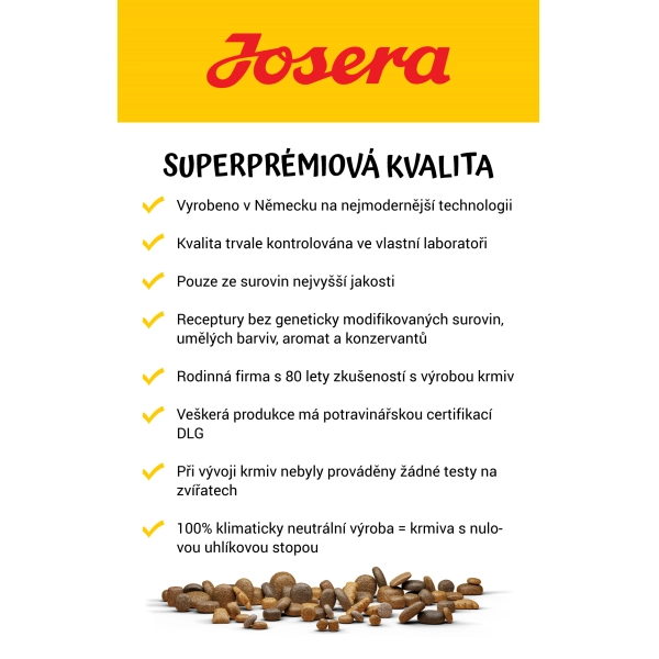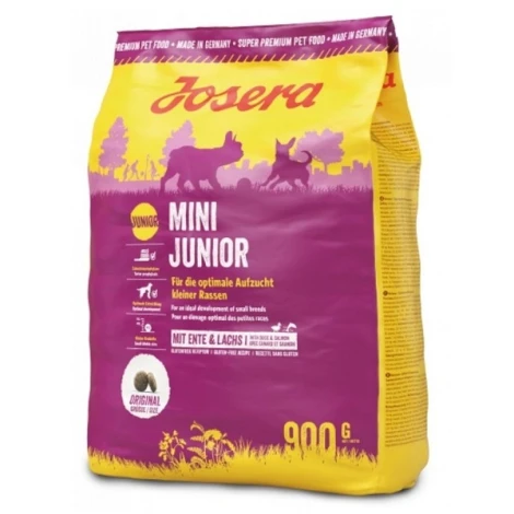 Kompletné suché krmivo Josera Mini Junior s kačicou a lososom pre šteňatá malých plemien od 6. týždňa života. Bezlepková receptúra na podporu správneho vývoja mozgu a svalov napomáha redukovať zubný kameň.