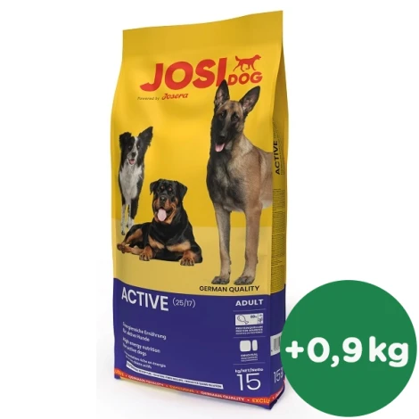 Kompletné krmivo pre aktívne dospelé psy s vysokým obsahom energie JosiDog Adult Active. Táto bezlepková receptúra obsahuje 80 % živočíšnych a 20 % rastlinných bielkovín.