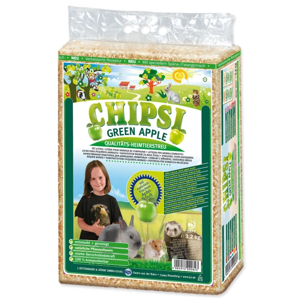 Lisované hobliny JRS Chipsi jablko sú parfumovaným variantom podstielky, vhodný na chov škrečkov, králikov, myší, morčiat, potkanov, pieskomilov a ďalších drobných cicavcov. Hobliny sú vyrobené z mäkkého dreva z našich lesov, a majú sviežu jablčnú vôňu. Sú sterilné, vysoko savé a majú minimálnu prašnosť. Vďaka sviežej prírodnej vôni pohlcujú nepríjemné pachy a sú vyrobené bez chemických látok.