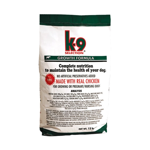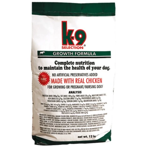 K-9 Selection Growth je krmivo pre šteňatá a mladé rastúce psy. Granule sú vhodné aj pre gravidné a dojčiace sučky.