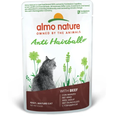Kapsička Almo Nature Cat Functional Anti Hairball s hovädzím je funkčné vlhké krmivo pre dospelé mačky s rastlinnou vlákninou, ktorá má preventívny účinok proti vzniku bezoárov v črevách a uľahčuje ich priechod tráviacim traktom.