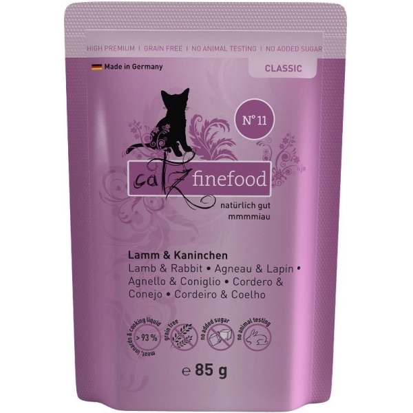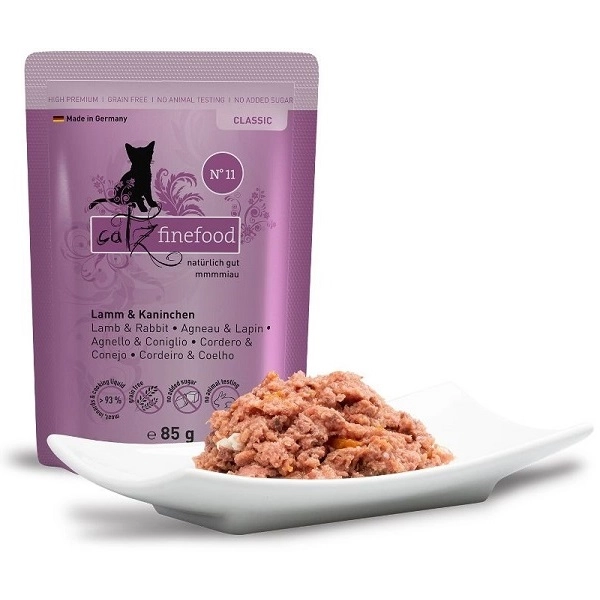 Lahodná kapsička pre mačky, ktorá obsahuje vysoký podiel jahňacieho a králičieho mäsa, zdraviu prospešné brusnice a mrkvu. Kapsičky Catz finefood obsahujú iba suroviny vysokej potravinárskej kvality a svojím zložením zodpovedajú prirodzenej mačacej strave.
