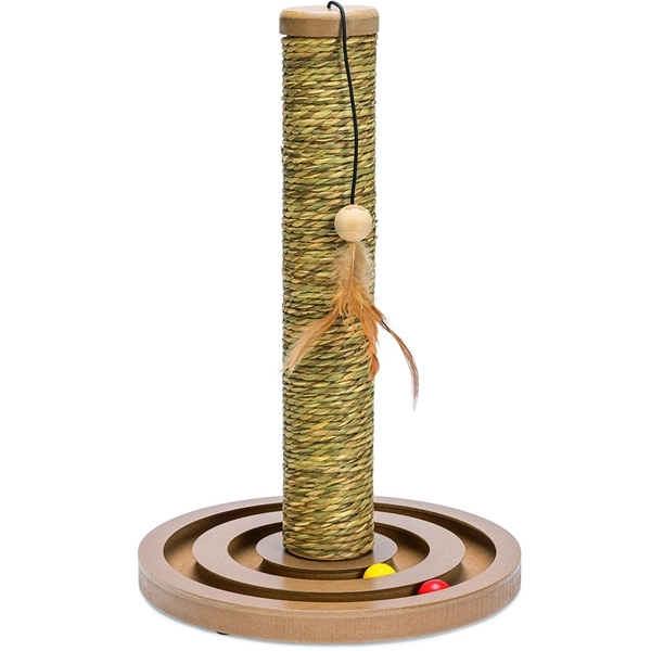 Krásny na pohľad, a ešte lepší vo vnútri. Škrabadlo pre mačky Karlie s morskou trávou tvorí originálne škrabadlo s hračkou z dreva a peria vrátane parádneho dreveného kolotoča na hodiny vzrušujúcej zábavy. Hravý škrabací stĺpik Karlie je tu pre všetky akčné a neposedné povahy.