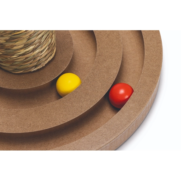 Zábavné škrabadlo Karlie s morskou trávou pre mačky. Drevený podstavec s loptičkou, škrabadlo s morskou trávou a parádna hračka na šnúrke s omamným perím a drevenou loptičkou. Integrovaný kolotoč bystrí zmysly a zvyšuje záujem o hru. Podporujte lovecký inštinkt a starostlivosť o pazúriky so škrabadlom pre mačky Karlie.