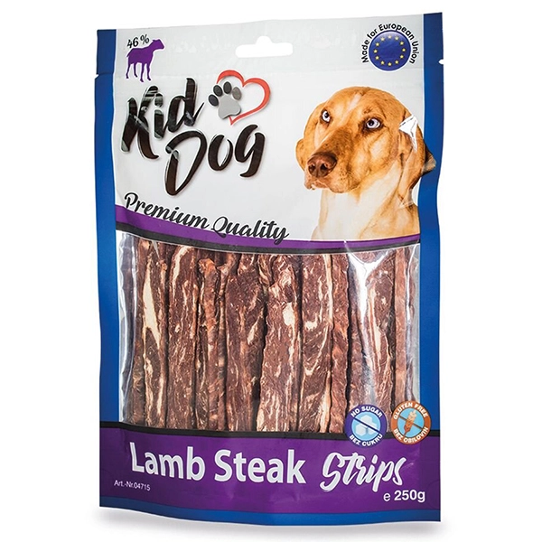So sušenými prúžkami jahňacích steakov KidDog nezostane suchá ani jedna psia papuľka. Aj tí najväčší jedáci budú slintať. Sušené mäso nádherne vonia a chutí. Vhodné pre malých aj veľkých psov každého veku.