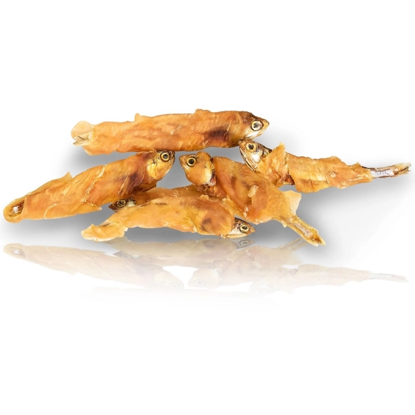 Krehké slnečné rybičky omotané sušeným kuracím mäsom. To je dobrota. KidDog rybičky sú obľúbenou masovou pochúťkou pre psíkov každého veku i veľkosti. Uvidíte, že budú mať úspech! Celých 50 % tvorí kuracie mäso, ktoré núti psíka žuť. Je tuhšie, ale chutné a skvele sa hodí ku krehkým rybičkám,