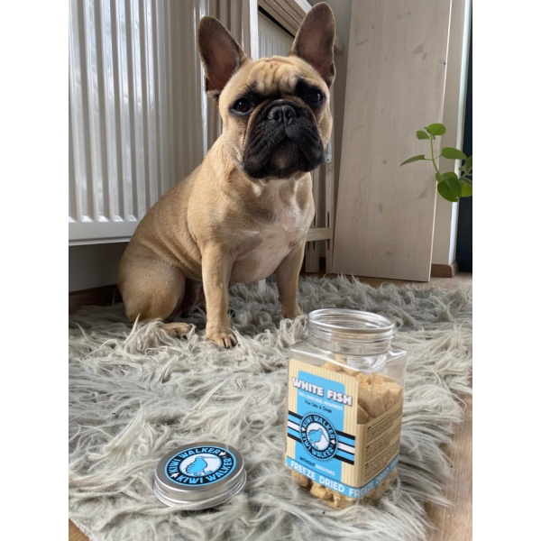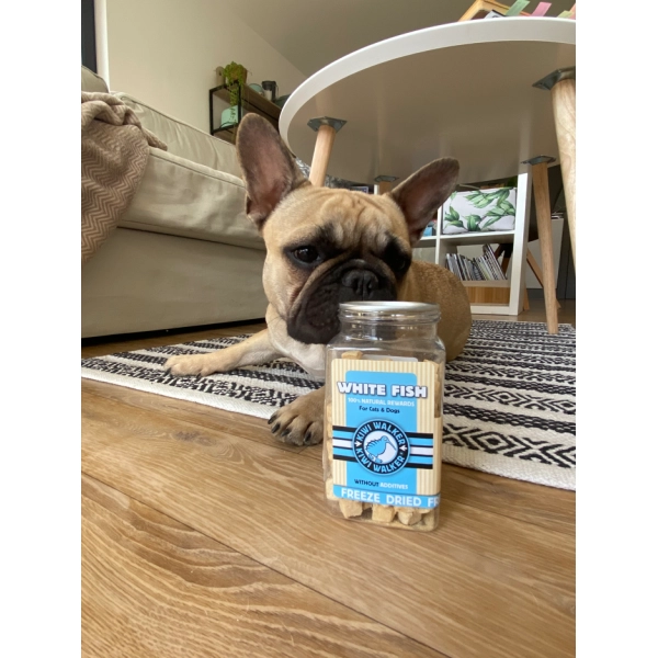 Mrazom sušené rybie mäso Kiwi Walker je 100 % prírodná pochúťka z malých kúskov skutočného mäsa, ktorým nepohrdne ani malý, veľký, lenivý či vytrvalý hafan. Pochúťky Kiwi Walker neobsahujú žiadne pridané prísady ani konzervačné látky, len čisté mäso pre spokojné bruško.
