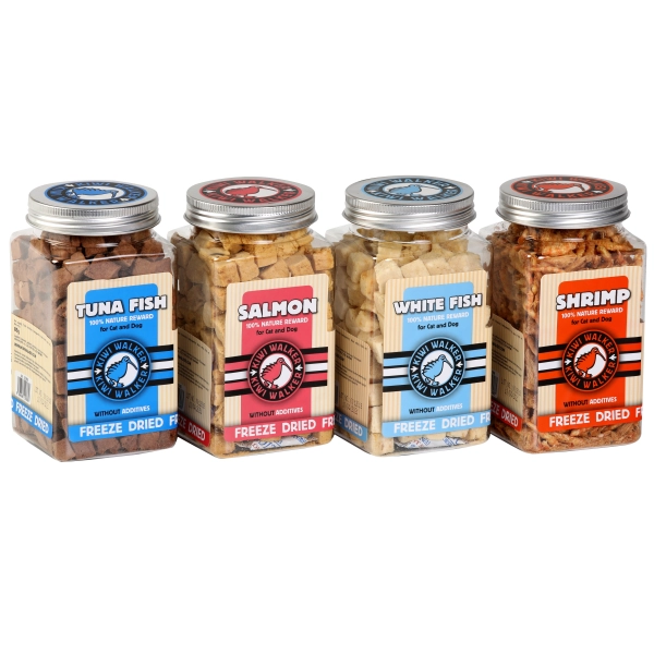 Mrazom sušené mäso z tuniaka Kiwi Walker je 100 % prírodná pochúťka vyrobená z malých kúskov skutočného mäsa, ktorým nepohrdne ani malý, veľký, lenivý či odolný hafan. Pochúťky Kiwi Walker neobsahujú žiadne pridané prísady ani konzervačné látky, len čisté mäso pre spokojné bruško.