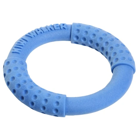 KiwiWalker Let's Play! je odolný krúžok, ktorý je vyrobený z ľahko čistiteľného a odolného materiálu. Vďaka tomu je krúžok dostatočne odolný, aby vydržal psie hryzenie, a navyše je skvelý na hru vo vode, pretože hračka pláva.