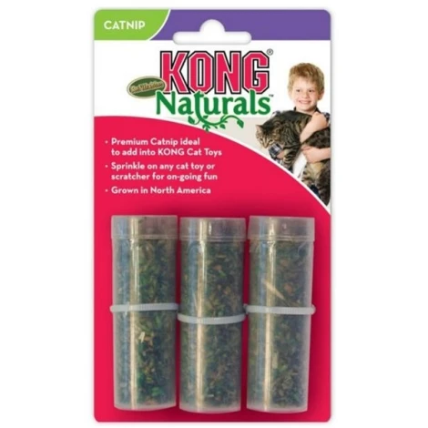 Kong Catnip pre mačky sú tri praktické tuby naplnené najkvalitnejším kocúrnikom pestovaným v Severnej Amerike. Vôňa mačacej mäty je pre mačky veľmi upokojujúca, navodzuje pocit pohody a podporuje radosť z hry. Mačacia mäta sa môže používať ako náplň hračiek, posypať ňou škrabadlo alebo vrecko s ňou položiť do mačacieho pelechu. Je tiež užitočná na upokojenie počas stresových situácií, ako je napríklad návšteva veterinára.