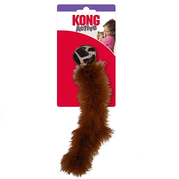 Originálna hračka pre mačky Kong loptička s páperovým chvostíkom. Šušťanie hračky pridáva ďalšie vzrušenie a stimuluje hru. Veľkosť, tvar a materiál hračky je špeciálne navrhnutý tak, aby podporoval zápasenie mačky s hračkou.