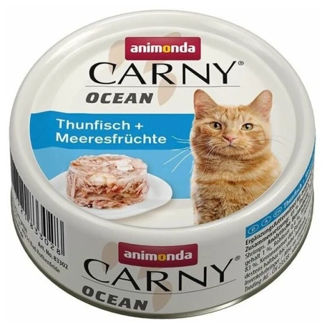 Animonda Carny Ocean je veľmi lahodná a ľahká strava pre Vašu mačku. Mačky od prírody milujú ryby, a preto je pre nich táto konzerva veľkou lahôdkou. Rybie mäso obsahuje cenné esenciálne aminokyseliny pre zdravý život Vašej mačky. Rybie bielkoviny sú ľahké a preto sú vhodné hlavne pre fyzicky aktívnejší mačky. Konzervy sú bez konzervantov a obilnín. Obsahujú len vybrané rybie mäso a žiadne ďalšie pridané suroviny.