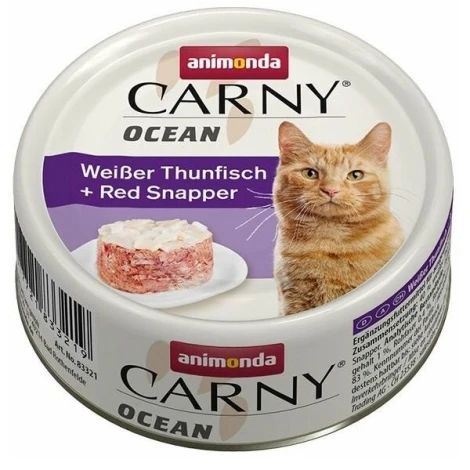 Animonda konzerva CARNY OCEAN - tuniak + red snapper 80 g je ľahká, ale veľmi chutná konzerva.