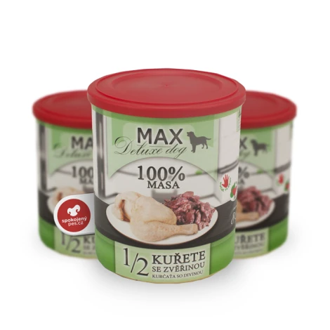 Mäso 100 % (kurací štvrtky 75 %, zverina 25 %).