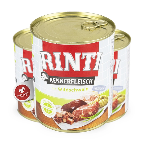 Konzerva Rinti s lahodnými kúskami mäsa z divokého prasaťa pre dospelých psov. Doprajte svojmu psíkovi netradičné zmenu v jedálničku, ktorá mu veľmi zachutí.